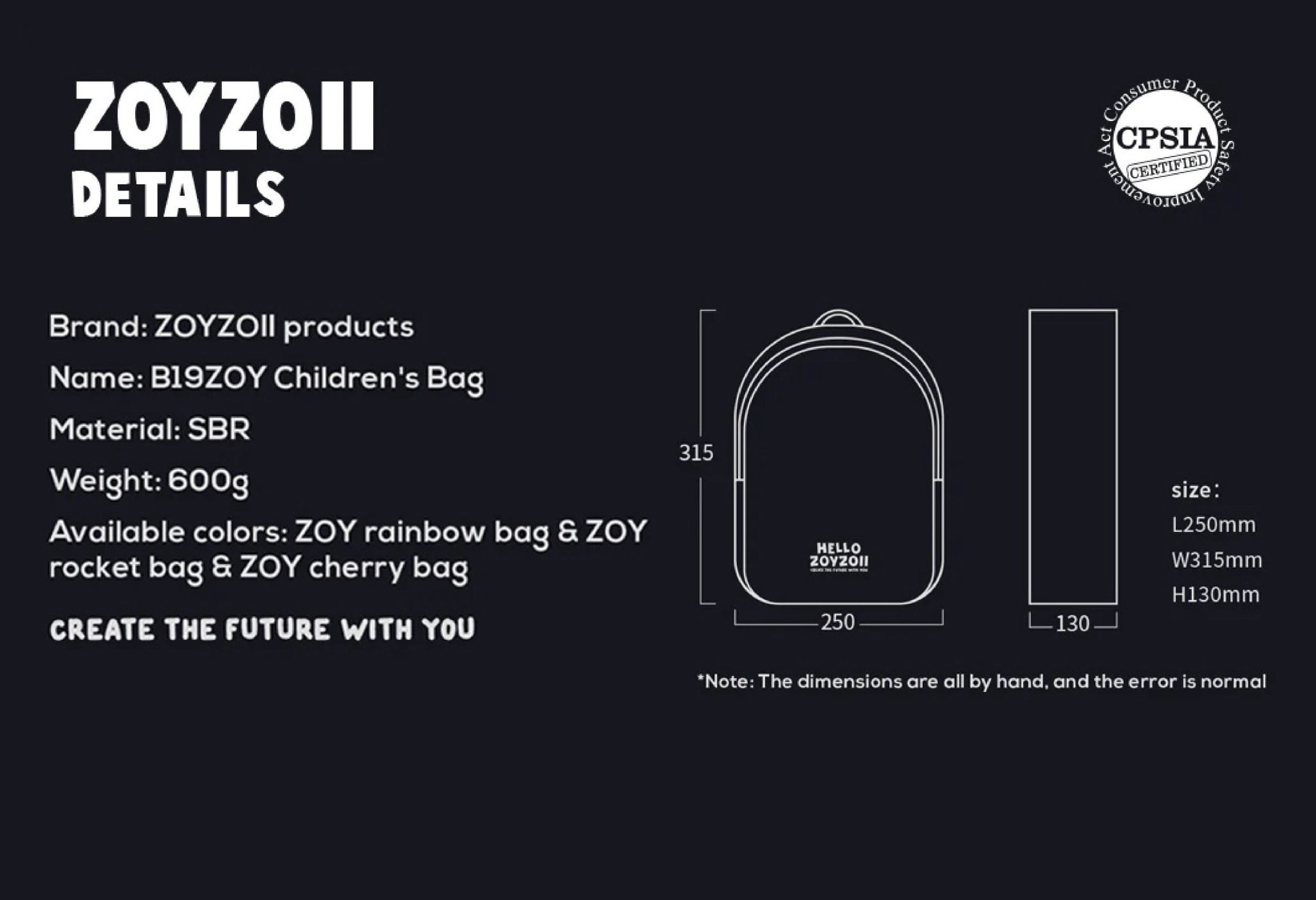 Balo đi học Zoyzoii đã thông qua những kiểm định nghiêm ngặt về an toàn và chất lượng CPSIA của Hoa Kỳ, không chứa các chất độc hại như chì, BPA, PVC,...chất liệu thân thiện với môi trường, hoàn toàn tự nhiên và có thể phân hủy.