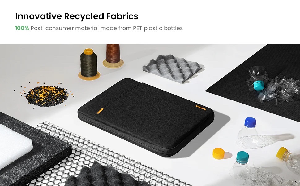 Trong nỗ lực hỗ trợ thiết kế bền vững, Tomtoc đã tạo ra vật liệu này bằng vải tái chếbền bỉ, 40% vật liệu làm từ chai nhựa PET. Tomtoc cam kết cung cấp khả năng bảo vệ hàng ngày cho máy tính xách tay của bạn đồng thời thân thiện với môi trường của chúng ta, sử dụng nhựa tái sinh vào các sản phẩm hàng ngày mang lại lợi ích cho bạn và hành tinh của chúng ta.