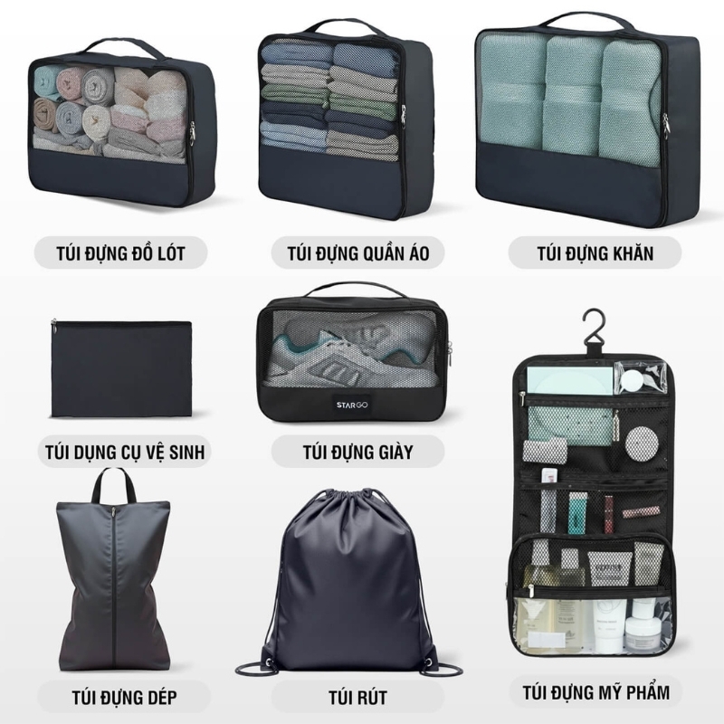 Bộ phụ kiện 8 túi Stargo Arreda không chỉ là món đồ tiện ích cho những ai yêu thích sự ngăn nắp mà còn là lựa chọn hoàn hảo cho các tín đồ du lịch, công tác hay tập gym. Nhẹ – bền – đẹp – tiện dụng, Stargo Arreda giúp bạn sắp xếp mọi thứ khoa học, tiết kiệm không gian và thời gian, để mỗi hành trình luôn bắt đầu trong sự thoải mái và tràn đầy năng lượng.